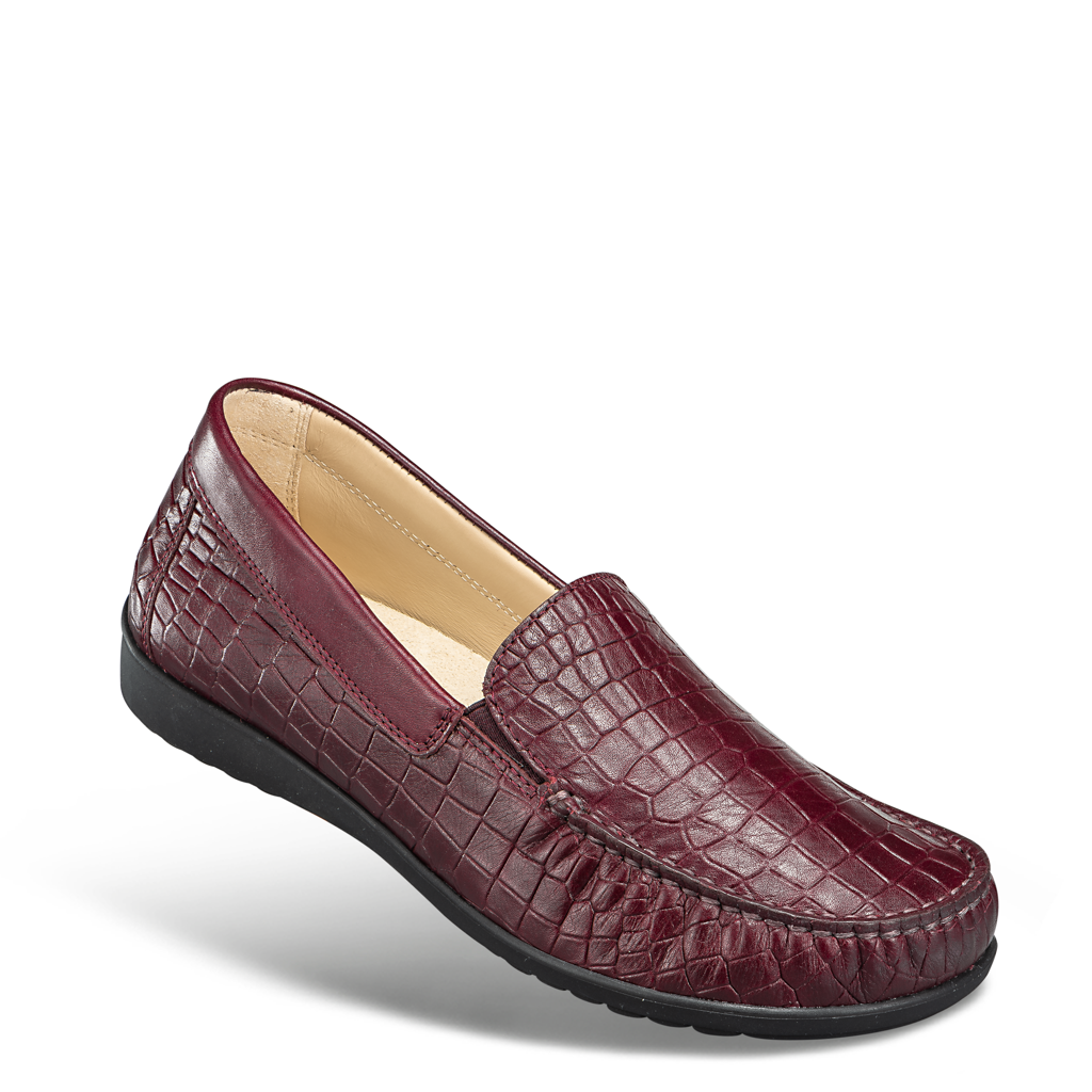 Mocassin en cuir nappa gaufré, inserts élastiques à l'ouverture, doublure cuir; semelle intérieure spéciale HELVESKO amovible, revêtue de cuir; semelle Douceur