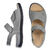 Sandale confort en nubuck, ajustement par deux bandes velcro, bride arrière à insert élastique, doublure en cuir de chevreau; semelle intérieure Bio-Fit amovible en liège léger, revêtue de cuir; semelle en gomme déroulante